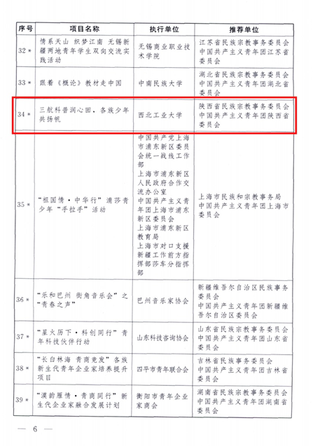 此次成功入选,是西北工业大学推动青少年科普教育与民族融合实践深度融合的新成效,标志着相关工作进入新阶段,也为学校在更高起点上系统化、常态化地深化各族青少年交流工作奠定了坚实基础。